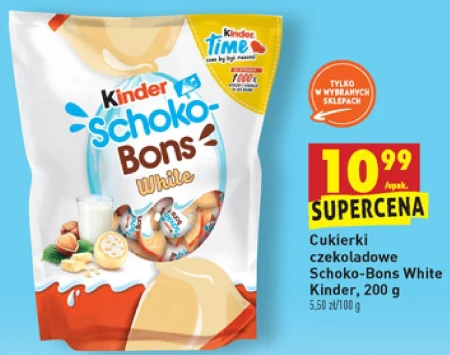 Cukierki czekoladowe Schoko-Bons White Kinder, waga 200 g. Oferta dostępna tylko w wybranych sklepach.