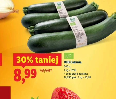 BIO Cukinia 500 g 1 kg = 17,98 * cena przed obniżką: 12,99/opak., 1 kg = 25,98 Świeża **bio cukinia** to doskonały składnik zdrowych posiłków, idealna do przygotowywania lekkich dań, zup, a także kreatywnych **potraw wegetariańskich** i **wegetariańskich**. Bogata w witaminy i minerały **cukinia** wspiera zdrową dietę, a jej delikatny smak sprawia, że świetnie komponuje się z różnymi przyprawami i **warzywami**, stanowiąc bazę wielu **przepisów kulinarnych**. Można ją również wykorzystać do przygotowania **domowych przetworów**, takich jak **cukiniowa pasta** czy **konfitura z cukinii**.