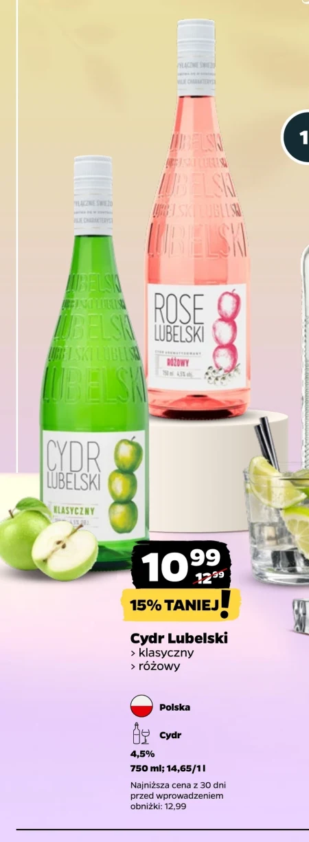 Cydr Lubelski klasyczny i różowy jest dostępny w ofercie Netto w cenie 10,99 zł, a wcześniej kosztował 12,99 zł, co oznacza 15% taniej za butelkę o pojemności 750 ml. To orzeźwiający napój o zawartości alkoholu 4,5%, idealny na ciepłe dni lub jako dodatek do spotkań ze znajomymi. Produkowany w Polsce, stanowi doskonałą alternatywę dla piwa i wina, oferując delikatny, owocowy smak. Najniższa cena w ostatnich 30 dni to 12,99 zł, więc warto skorzystać z obecnej obniżki i zaopatrzyć się w ulubiony cydr.