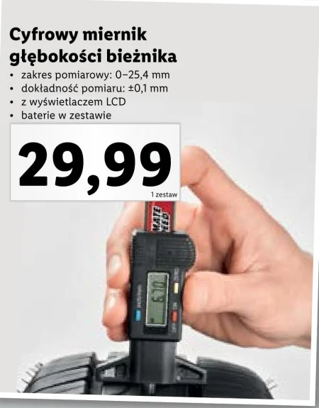 Cyfrowy miernik głębokości bieżnika, ULTIMATE ESPEED, zakres pomiarowy: 0-25,4 mm dokładność pomiaru: ±0,1 mm z wyświetlaczem LCD baterie w zestawie.