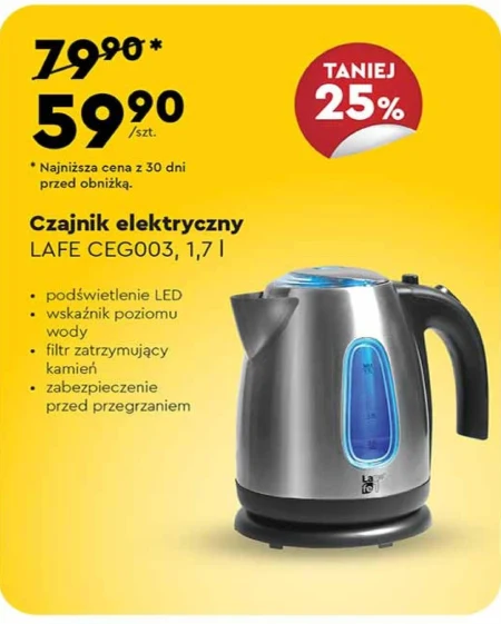 Czajnik elektryczny LAFE CEG003, 1,7 l. • podświetlenie LED • wskaźnik poziomu . wody . filtr zatrzymujący kamień zabezpieczenie przed przegrzaniem