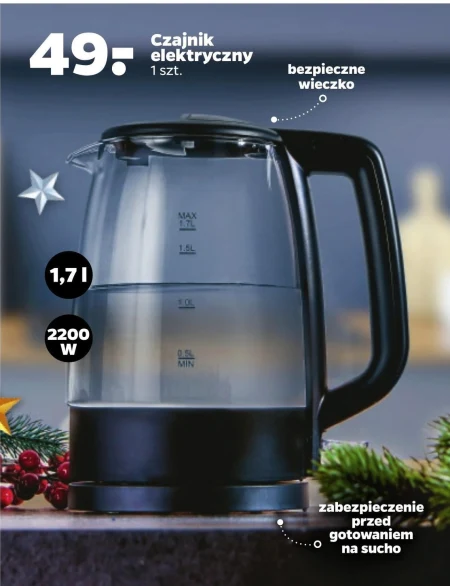 Czajnik elektryczny 1 szt. 1,7 l, moc 2200 W.