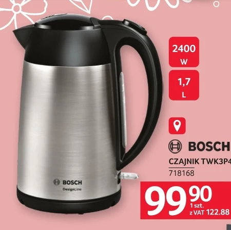 W Selgros Cash&Carry można kupić czajnik elektryczny Bosch TWK3P4 za 99,90 zł brutto. Urządzenie ma moc 2400 W i pojemność 1,7 litra, co pozwala na przygotowanie większej ilości napojów jednocześnie. Czajnik posiada funkcję szybkiego zagotowania wody, co oszczędza czas, a jego solidne wykonanie zapewnia długotrwałe użytkowanie. To praktyczne rozwiązanie dla każdego, kto ceni sobie wygodę i szybki dostęp do gorącej wody.