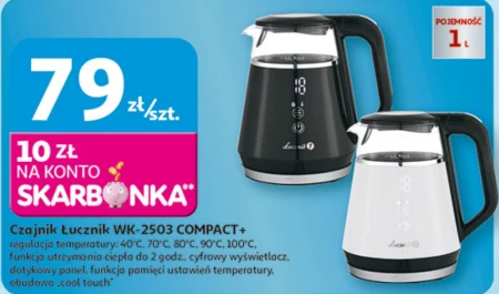 Czajnik Łucznik WK-2503 COMPACT+ regulacja temperatury: 40°C, 70℃, 80°℃, 90℃, 100℃, funkcja utrzymania ciepła do 2 godz, cyfrowy wyświetlacz, dotykowy panel, funkcja pamięci ustawień temperatury. obudowa .cool touch"