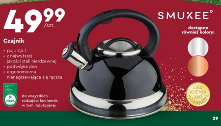 Czajnik poj.: 2,5 l z najwyższej jakości stali nierdzewnej podwójne dno ergonomiczna nienagrzewająca się rączka