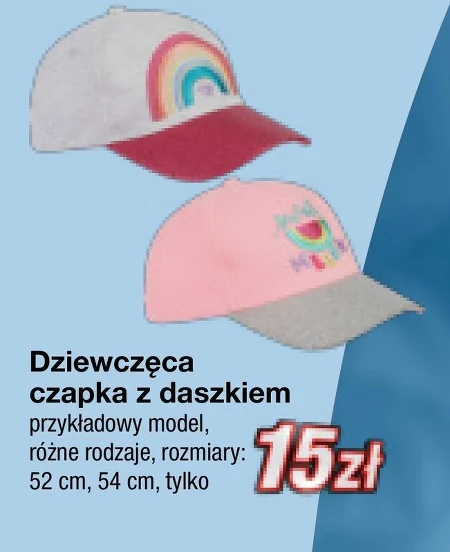 Dziewczęca czapka z daszkiem przykładowy model, różne rodzaje, rozmiary: 52 cm, 54 cm