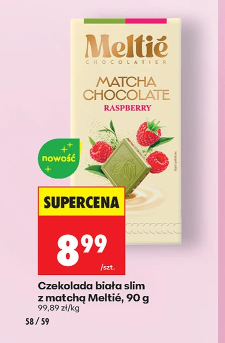 Czekolada biała slim z matchą Meltié, 90 g 99,89 zł/kg