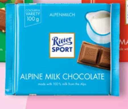 Czekolada Ritter Sport, 100 g różne rodzaje.