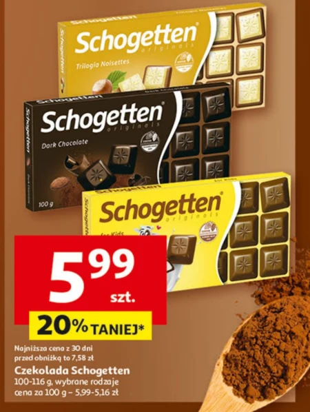 Czekolada Schogetten 100-116 g, wybrane rodzaje cena za 100 g - 5,99-5,16 zł