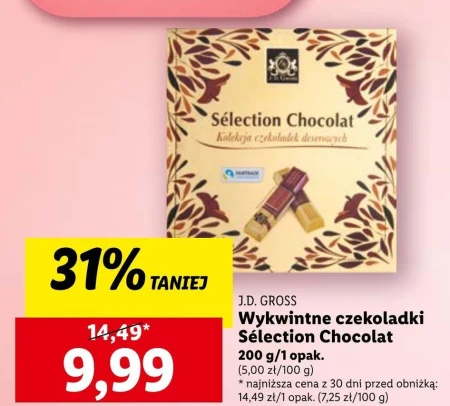J.D. GROSS Wykwintne czekoladki Sélection Chocolat 200 g/1 opak. (5,00 zł/100 g) * najniższa cena z 30 dni przed obniżką: 14,49 zł/1 opak. (7,25 zł/100 g)