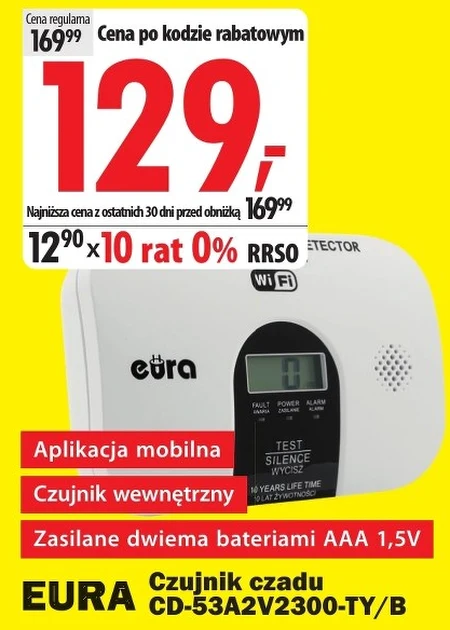 Czujnik czadu CD-53A2V2300-TY/B Aplikacja mobilna TEST SILENCE Czujnik wewnętrzny WYCISZ 10 YEARS LIFE TIME NO LAT ŻYWOTNOŚCI Zasilane dwiema bateriami AAA 1,5V