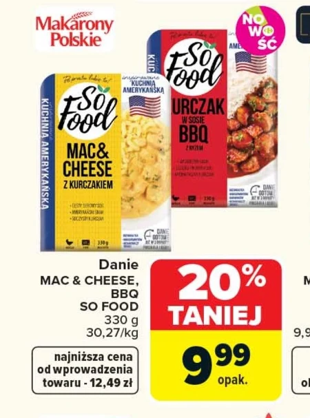 Danie MAC & CHEESE, BBQ SO FOOD 330 g 30,27/kg najniższa cena od wprowadzenia towaru - 12,49 zł