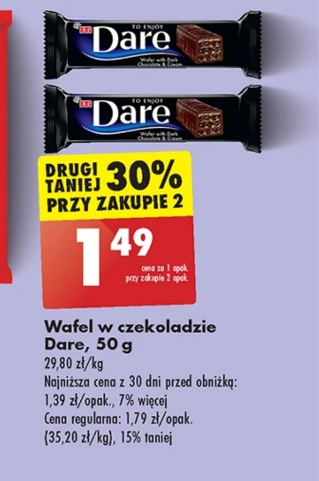Dare Wafel w czekoladzie deserowej z kremem kakaowym 50 g - Oferta archiwalna