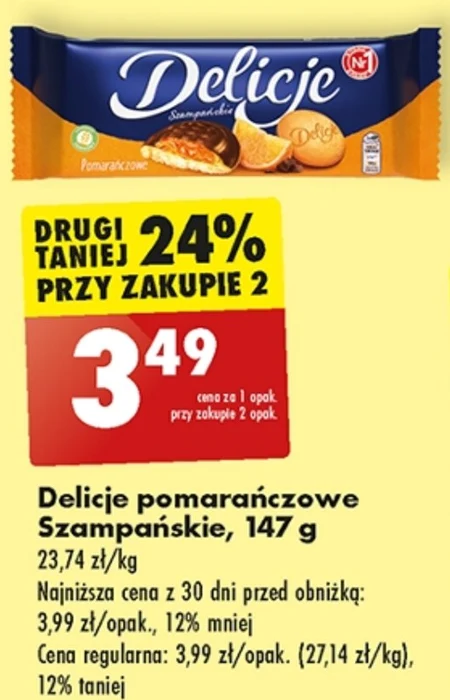 Delicje Szampańskie Biszkopty z galaretką pomarańczową oblewane czekoladą 147 g - Oferta archiwalna