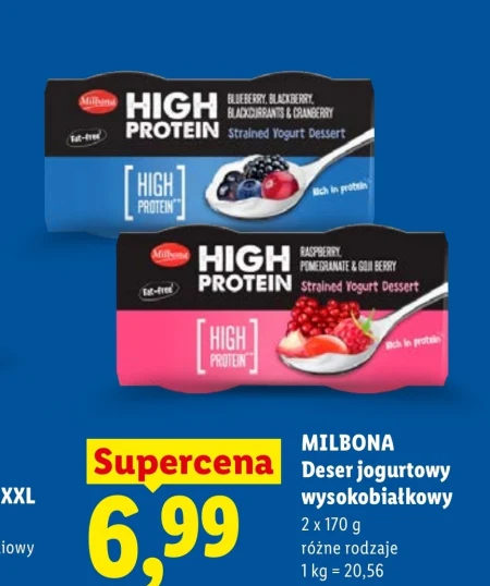 MILBONA Deser jogurtowy wysokobiałkowy 2 x 170 g różne rodzaje 1 kg = 20,56