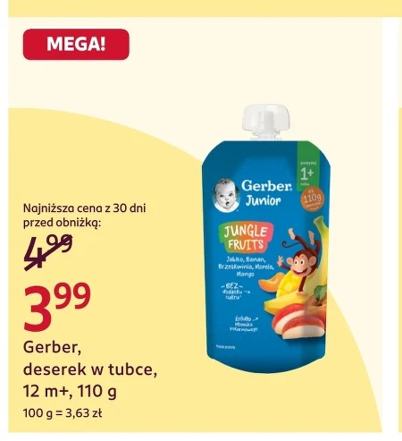 Gerber, deserek w tubce, 12 m+, 110 g 100 g = 3,63 zł