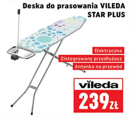 Deska do prasowania VILEDA STAR PLUS Elektryczna Zintegrowany przedłużacz Antenka na przewód