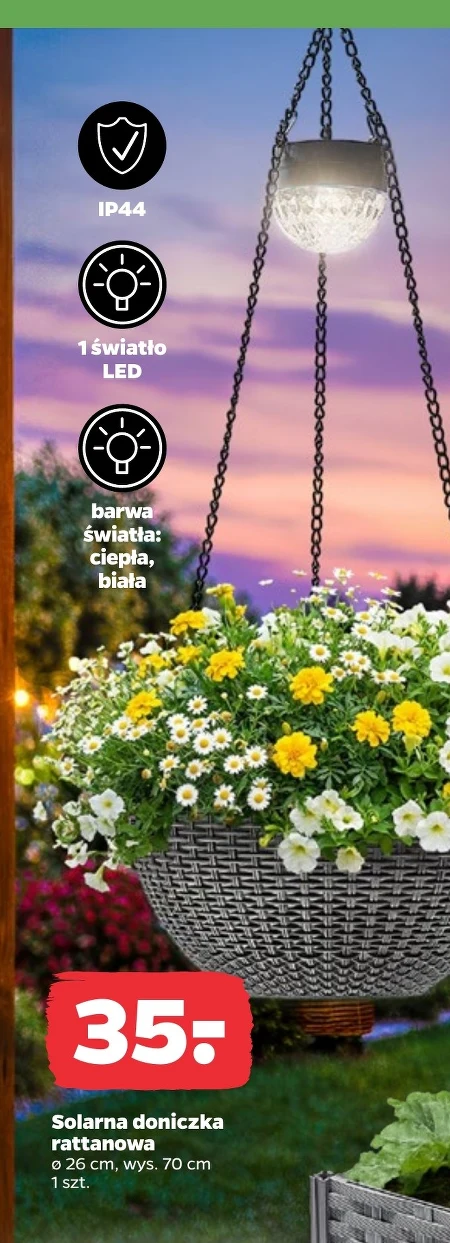 Solarna doniczka rattanowa 26 cm, wys. 70 cm 1 szt.
