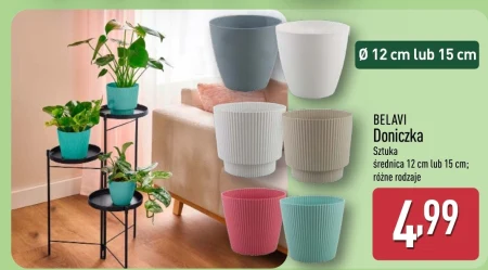 BELAVI Doniczka Sztuka średnica 12 cm lub 15 cm; różne rodzaje Doniczka BELAVI to idealne rozwiązanie do uprawy roślin doniczkowych, ziół i kwiatów zarówno w domu, jak i na balkonie czy tarasie. Dostępna w dwóch rozmiarach – średnicy 12 cm i 15 cm – doskonale sprawdzi się jako ozdobna osłonka na rośliny lub praktyczny pojemnik do sadzenia sadzonek i sukulentów.