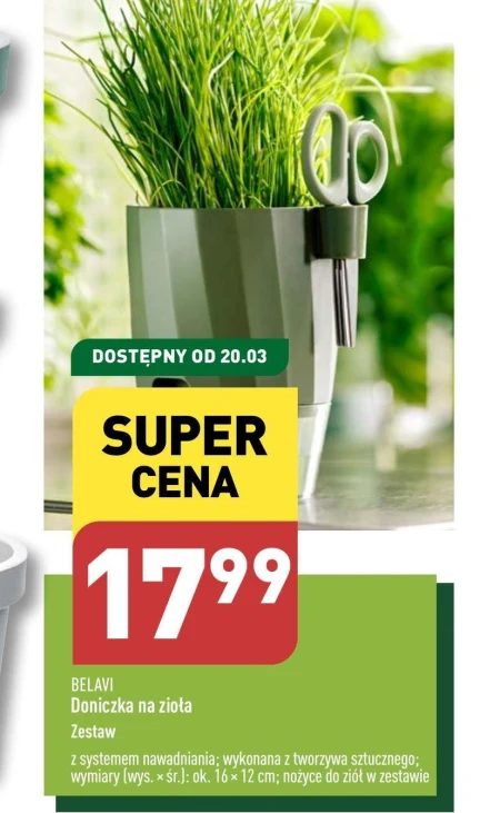 BELAVI Doniczka na zioła Zestaw z systemem nawadniania; wykonana z tworzywa sztucznego; wymiary (wys. x sr.): ok. 16 × 12 cm; nożyce do ziół w zestawie