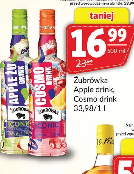 Żubrówka Apple drink i Cosmo drink dostępne są w ofercie Prim Market w cenie 33,98 zł za litr, a butelka o pojemności 500 ml kosztuje 16,99 zł, a Cosmo drink 23,99 zł. To orzeźwiające napoje alkoholowe, idealne na spotkania ze znajomymi lub jako dodatek do wieczornego relaksu. Oferta ta to okazja, aby zaoszczędzić na ulubionych smakach.
