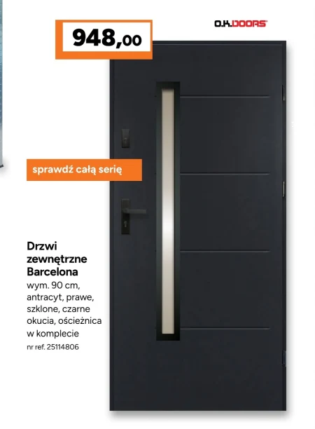 Drzwi zewnętrzne Barcelona wym. 90 cm, antracyt, prawe, szklone, czarne okucia, ościeżnica w komplecie nr ref. 25114806 sprawdź całą serię