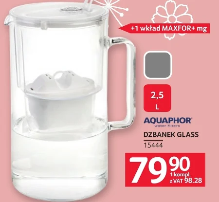 Dzbanek filtrujący AQUAPHOR GLASS z wkładem MAXFOR+ mg jest dostępny w Selgros Cash&Carry w cenie 79,90 zł za komplet z podatkiem VAT. Pojemność dzbanka wynosi 2,5 litra. Produkt przeznaczony jest do uzdatniania wody pitnej, usuwając z niej zanieczyszczenia mechaniczne, chlor oraz metale ciężkie, poprawiając jej smak i zapach. Dodatkowy wkład MAXFOR+ mg wzbogaca wodę w magnez, co korzystnie wpływa na zdrowie. To doskonałe rozwiązanie dla osób poszukujących czystej i smacznej wody, bez konieczności zakupu wody butelkowanej.