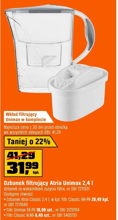 Dzbanek filtrujący Atria Unimax 2,4 l dzbanek ze wskaźnikiem zużycia filtra