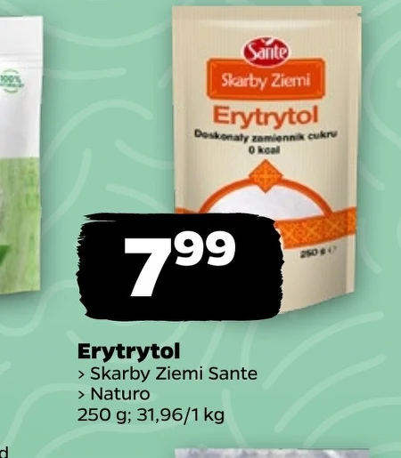 Erytrytol Skarby Ziemi Sante jest dostępny w ofercie Netto w cenie 7,99 za opakowanie 250 g, co daje 31,96 za kilogram. Produkt ten to naturalny zamiennik cukru, idealny dla osób dbających o zdrową dietę lub ograniczających spożycie sacharozy. Można go wykorzystać do słodzenia napojów, deserów, a także podczas pieczenia i gotowania, zachowując ulubiony smak potraw. Dzięki swoim właściwościom, erytrytol nie powoduje nagłych skoków poziomu cukru we krwi. Warto skorzystać z tej okazji i zaopatrzyć się w wysokiej jakości erytrytol, który wspomoże Twoje zdrowe nawyki żywieniowe. Oferta ważna od 2026-04-07 do 2026-05-11 Źródło: gazetka Netto