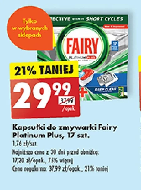 Fairy Platinum Plus Świeża ziołowa bryza Tabletki do zmywarki All In One, 17 kapsułek - Oferta archiwalna