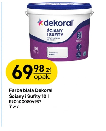 Farba biała Dekoral Ściany i Sufity 10 l 5904000804987 7 zł/l