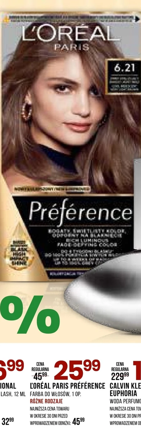 CORÉAL PARIS PRÉFÉRENCE w Drogerie Natura dostępna jest teraz za 25,99 zł zamiast 45,99 zł. Promocja obejmuje różne rodzaje farb do włosów w opakowaniu 1 sztuki. To idealny moment, aby odświeżyć kolor włosów w korzystnej cenie. Cena ta jest najniższa w ciągu ostatnich 30 dni.