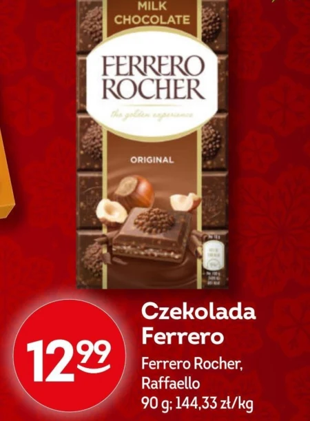 Ferrero Rocher Czekolada deserowa nadziewana z orzechowym nadzieniem i kawałkami orzechów 90 g - Oferta archiwalna