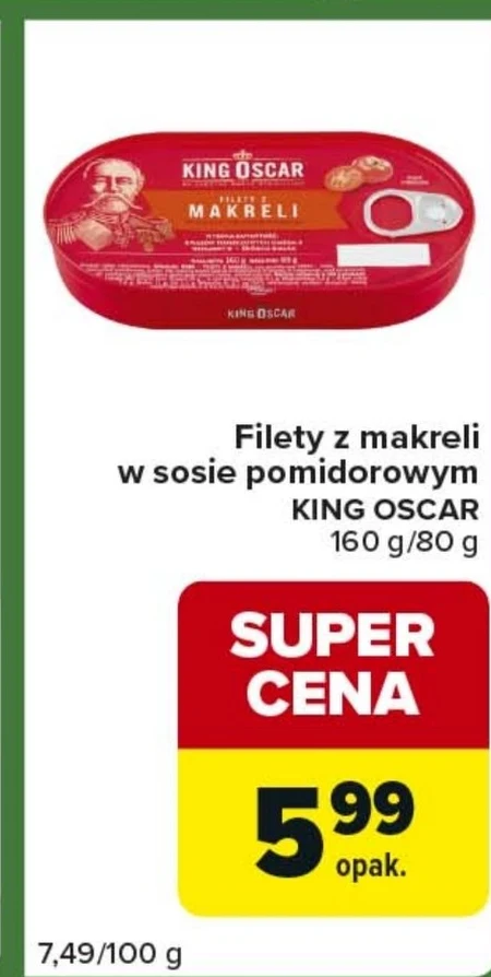Filety z makreli w sosie pomidorowym KING OSCAR 160 g/80 g
