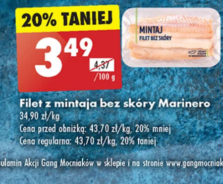 Filet z mintaja bez skóry Marinero 34,90 zł/kg Cena przed obniżką: 43,70 zł/kg, 20% mniej Cena regularna: 43,70 zł/kg, 20% taniej