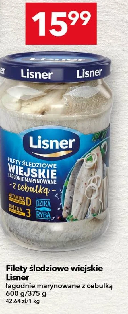 Filety śledziowe wiejskie Linser w Lewiatanie dostępne są teraz w cenie 42,64 zł za kilogram. Opakowanie zawiera 600 g lub 375 g delikatnie marynowanych filetów z dodatkiem cebulki, idealnych do szybkiego przygotowania przekąski lub jako dodatek do obiadu. Sprawdź aktualną ofertę Lewiatana i zaoszczędź na ulubionym smaku – promocyjna cena sprawia, że warto zaopatrzyć się w większą ilość.