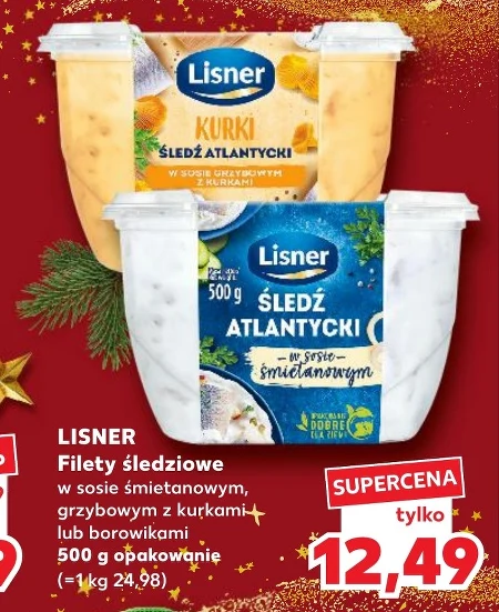 LISNER Filety śledziowe w sosie śmietanowym, grzybowym z kurkami- lub borowikami 500 g opakowanie (=1 kg 24,98)