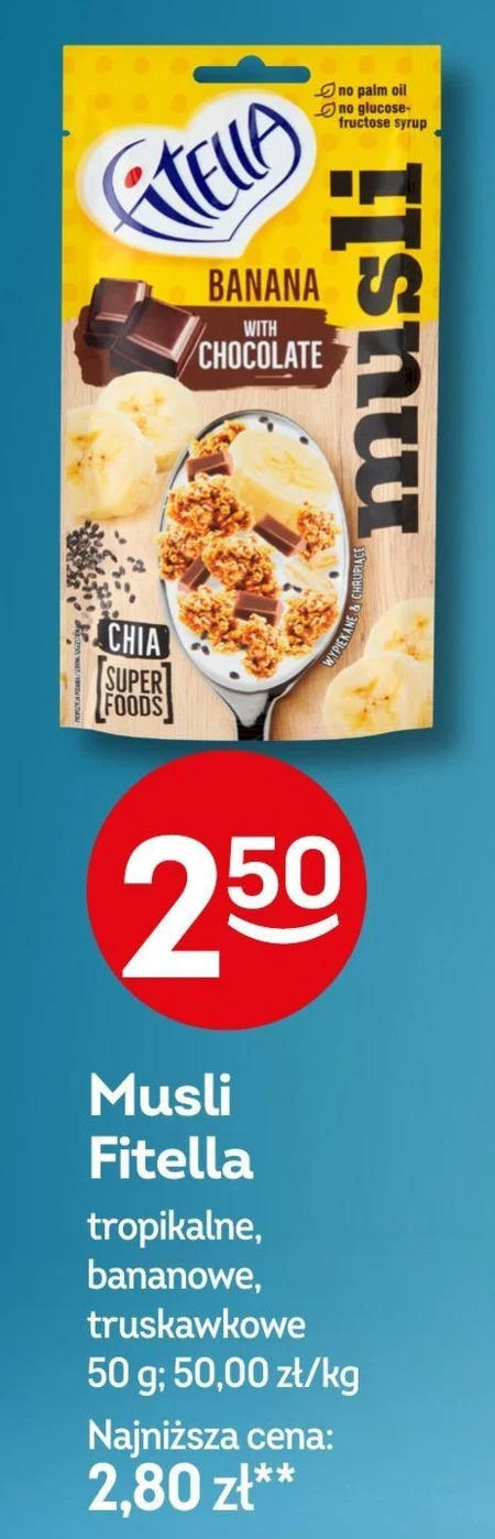 Fitella Musli chrupkie bananowe z kawałkami czekolady i nasionami chia 50 g - Oferta archiwalna