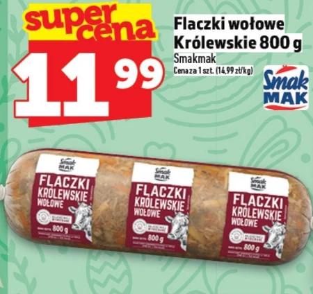 Flaczki wołowe Królewskie 800 g w sklepie Smakmak kosztują 11,99 zł (14,99 zł/kg). To klasyczne danie z wołowiny, gotowe do podgrzania i podania z ulubionymi dodatkami. Idealne na szybki obiad lub kolację, gdy brakuje czasu na gotowanie od podstaw. Sprawdź tę okazję, zanim promocja Topaz dobiegnie końca.