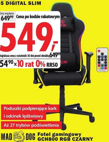 Fotel gamingowy GCH800 RGB CZARNY Poduszki podpierające kark i odcinek lędźwiowy Aż 27 trybów podświetlenia