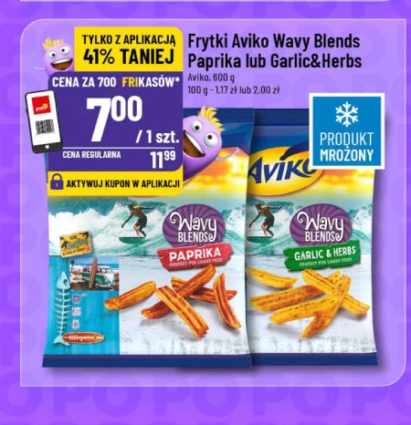 Frytki Aviko Wavy Blends Paprika lub Garlic&Herbs Aviko, 600 g 100 g - 1,17 zł lub 2,00 zł