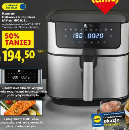 Masterpro Frytkownica beztłuszczowa Air Fryer, 1500 W, 6 L regulacja temperatury od 40℃ do 200°C