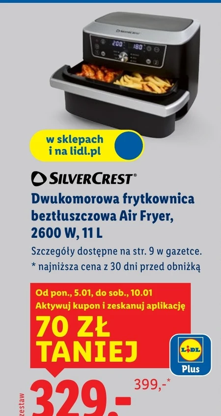 Dwukomorowa frytkownica beztłuszczowa Air Fryer, 2600 W, 11 L