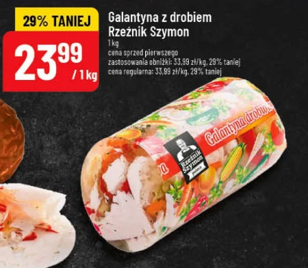 Galantyna z drobiem Rzeźnik Szymon 1 kg cena sprzed pierwszego zastosowania obniżki: 33,99 zł/kg, 29% taniej cena regularna: 33,99 zł/kg, 29% taniej 23,99 / 1 kg Galantyna z drobiem Rzeźnik Szymon jest dostępna w ofercie POLOmarket w cenie 23,99 zł za 1 kg, obniżonej o 29% z ceny 33,99 zł/kg. To tradycyjny wędliniarski wyrób, idealny na zimną przekąskę lub jako element deski serów i wędlin. Galantyna doskonale sprawdzi się podczas rodzinnych spotkań i uroczystości, oferując wyrazisty smak i delikatną konsystencję. Warto skorzystać z tej okazji, aby zaopatrzyć się w wysokiej jakości produkt w atrakcyjnej cenie. Oferta ważna od 2026-04-08 do 2026-04-14 Źródło: gazetka POLOmarket