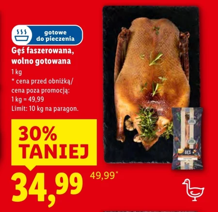 Gęś faszerowana, wolno gotowana 1 kg * cena przed obniżką/ cena poza promocją: 1 kg = 49,99 Limit: 10 kg na paragon.
