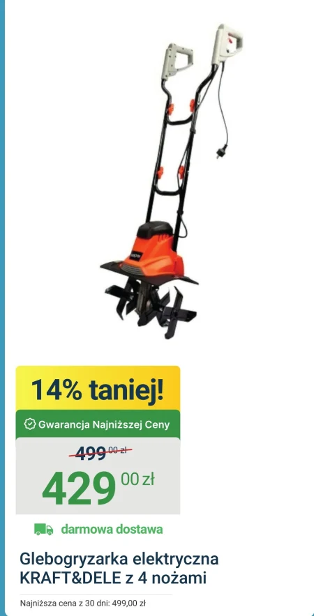 Glebogryzarka elektryczna KRAFT&DELE z 4 nożami Najniższa cena z 30 dni: 499,00 zł