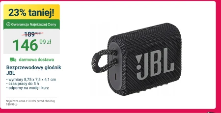 Bezprzewodowy głośnik JBL · wymiary 8,75 × 7,5 x 4,1 cm · czas pracy do 5 h · odporny na wodę i kurz