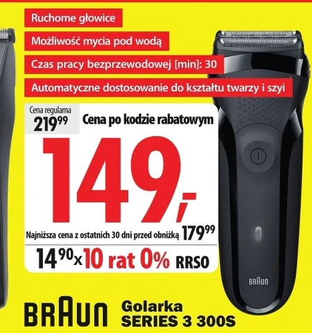 Golarka SERIES 3 300S Ruchome głowice Możliwość mycia pod wodą Czas pracy bezprzewodowej [min]: 30 Automatyczne dostosowanie do kształtu twarzy i szyi