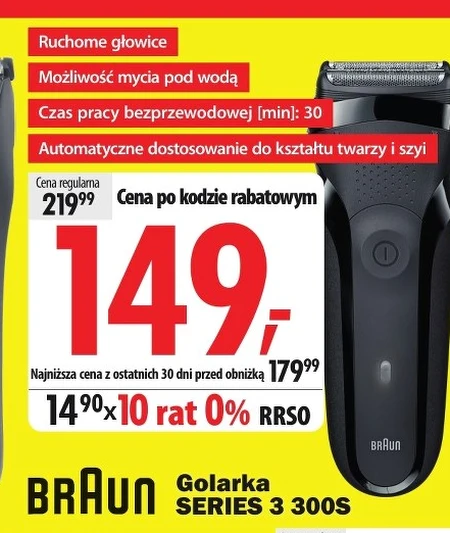 Golarka SERIES 3 300S Ruchome głowice Możliwość mycia pod wodą Czas pracy bezprzewodowej [min]: 30 Automatyczne dostosowanie do kształtu twarzy i szyi