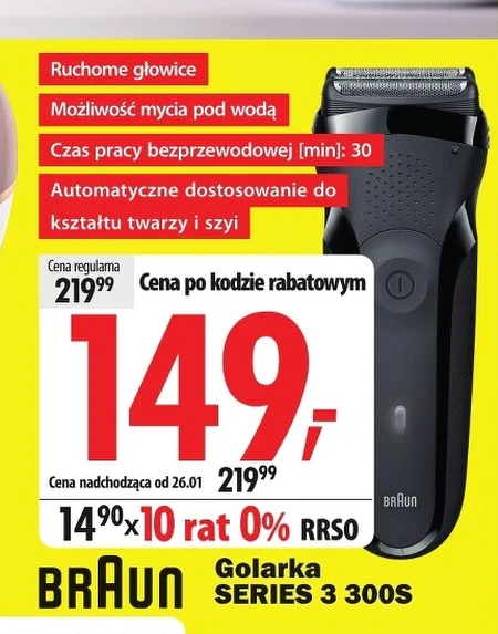 Golarka SERIES 3 300S Ruchome głowice Możliwość mycia pod wodą Czas pracy bezprzewodowej [min]: 30 Automatyczne dostosowanie do kształtu twarzy i szyi